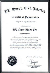 Pada tahun 1997 PT. Alter Abadi Tbk menjadi perusahaan yang terdaftar di Bursa Efek Indonesia.